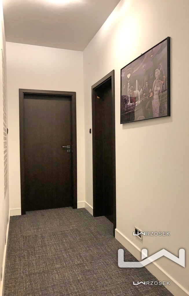 Nieruchomość składa się z salonu, otwartej kuchni, dwóch sypialni, pokoju kąpielowego, oddzielnego WC. Mieszkanie okalają dwa duże tarasy. Okna wychodzą na trzy strony świata. Duża otwarta przestrzeń za oknem. Lokal wysoki na 280 cm, nowocześnie wykończony i zaaranżowany w sposób oddzielający część dzienną od prywatnej. Mieszkanie zlokalizowane na osiedlu Queens Garden w Józefosławiu przy ulicy Enklawy.