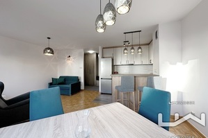 -salon z aneksem kuchennym- możliwość wydzielenia dodatkowego trzeciego pokoju ok. 27 m2